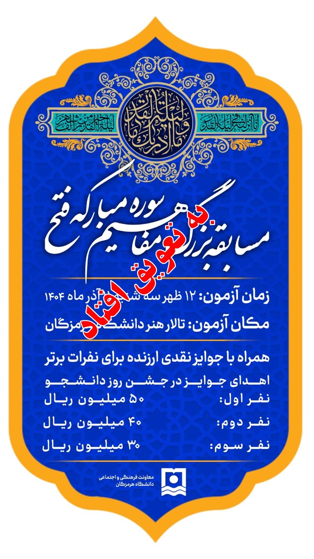 - فراخوان مسابقه به مناسبت گرامیداشت سالروز ارتحال ملکوتی امام خمینی رحمه الله علیه